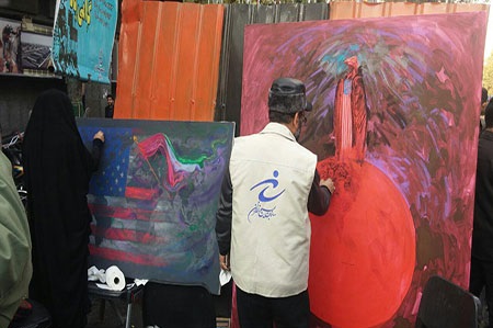 سازمان بسیج هنرمندان با شرکت در راهپیمایی اقدام به برپایی غرفه ای در مسیر راهپیمایی کرده بود که در آن چند تن از هنرمندان مشغول کشیدن نقاشی هایی با مضامین ضد آمریکایی بودند.