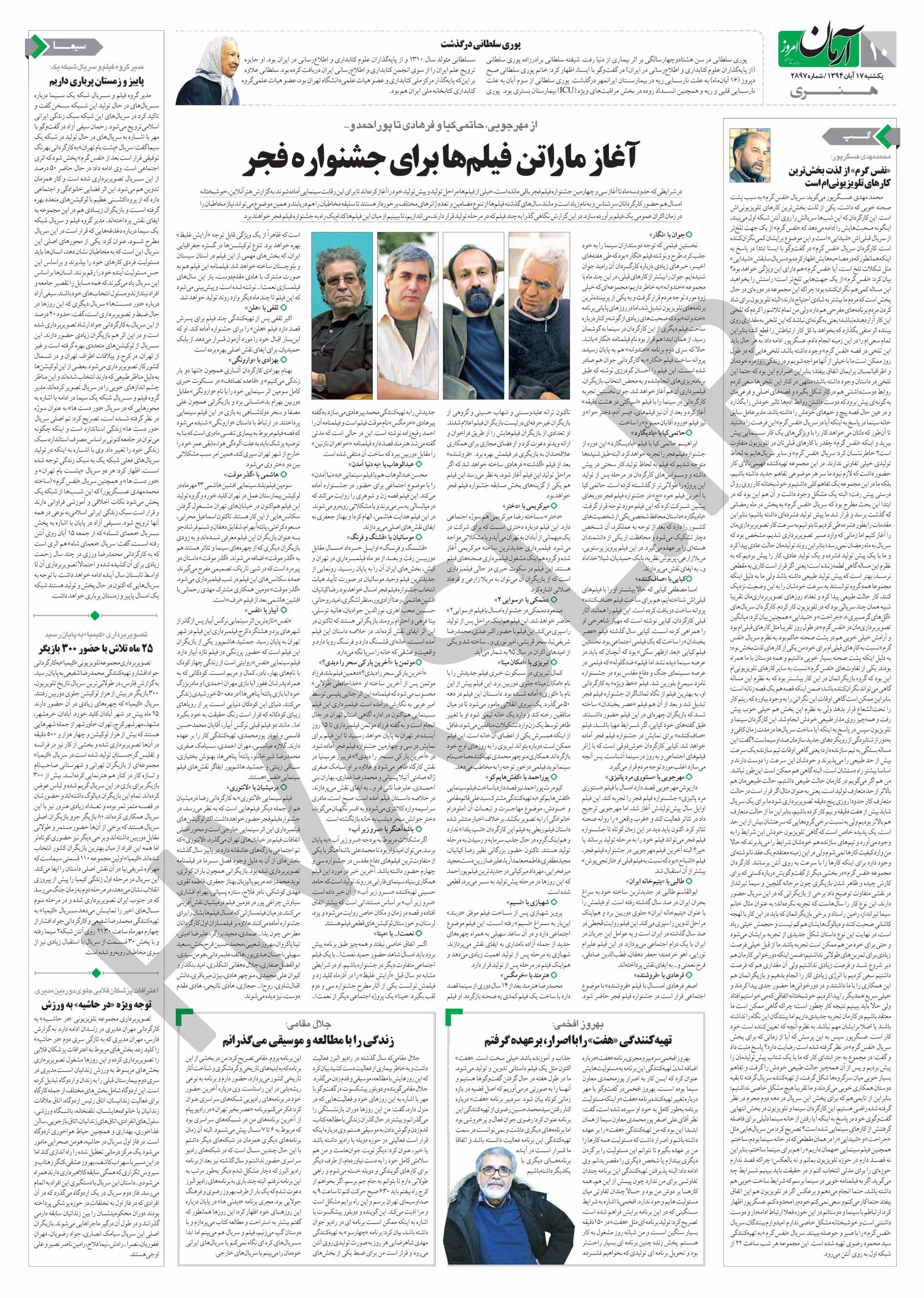 صفحات فرهنگی روزنامههای هفدهم آبان