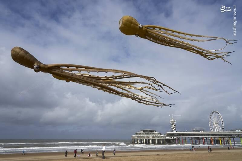 به پرواز درآوردن بادبادکهای اختاپوسی در ساحل شهر لاهه هلندعکس: Nacho Calonge