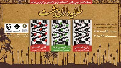 به گزارش حلقه وصل، برنامه طلایه داران بهشت که به همت باشگاه کتاب خانه فرهنگ تهرانسر برگزار میشود در این برنامه به معرفی و بازخوانی سه اثر شاعران جوان آیینی کشور به نامهای شب گریههای مولانا (اثر علی سلیمانی)، راس ساعت سه (اثر مهدی رحیمی) و آتش و گلستان (اثر سارا جلودارایان) با حضور شاعر و استاد پیشکسوت حمیدرضا شکارسری در تاریخ ۳ آذر ۱۳۹۴ ساعت ۱۷ میپردازد.