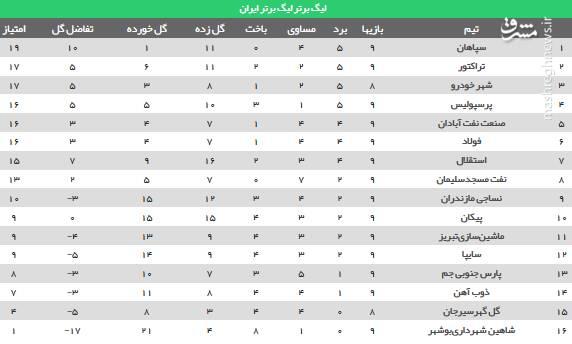 عکس/ جدول رده بندی لیگ برتر بعد از شکست تراکتور مقابل استقلال
