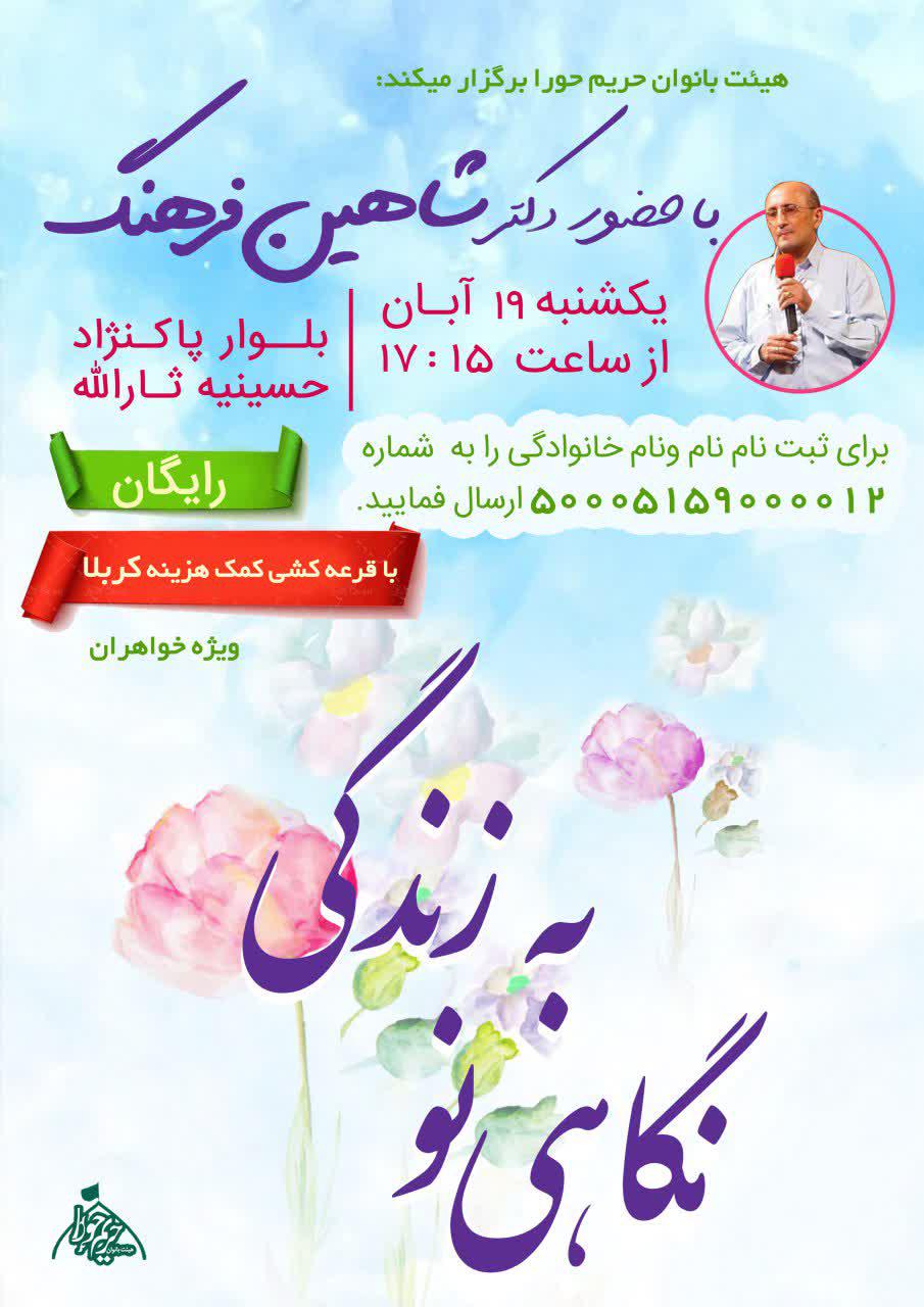 مسئول هیئت بانوان حریم حوراء یزد اضافه کرد: این نشست که به صورت رایگان برگزار می شود با حضور دکتر شاهین فرهنگ همراه است و مراسم قرعه کشی کمک هزینه کربلای معلی و مولودی خوانی نیز از دیگر بخش های این برنامه است.