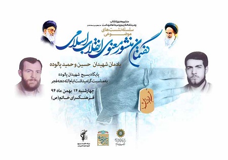 یادمان شهیدان پالوده با حضور خانواده شهیدان پالوده روز چهارشنبه 14 بهمن ساعت 16 و یادمان شهیدان عالمی با حضور خانواده شهیدان عالمی چهارشنبه 21 بهمن ماه ساعت 16 در سالن آمفی تئاتر خاتم(ص) برگزار میشود.