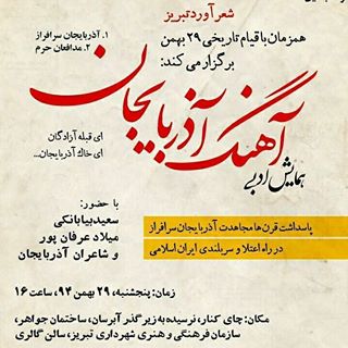 لازم به ذکر است، محفل شعرآورد تبریز هر هفته روز پنجشبنه ساعت ۱۶ در محل چای کنار، نرسیده به زیرگذر آبرسان، ساختمان جواهر، سازمان فرهنگی و هنری شهرداری تبریز، سالن گالری برگزار می شود.