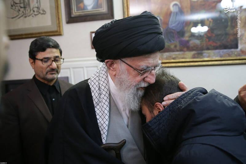 عکس/ فرزند سرلشکر سلیمانی در آغوش رهبر انقلاب
