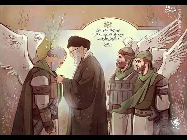 " سلیمانی آسمانی؛ «ارواح طیّبهی شهیدان روح مطهّر قاسم سلیمانی را در آغوش گرفتند.» بخشی از پیام تسلیت رهبر انقلاب در پی شهادت سردار سلیمانی "