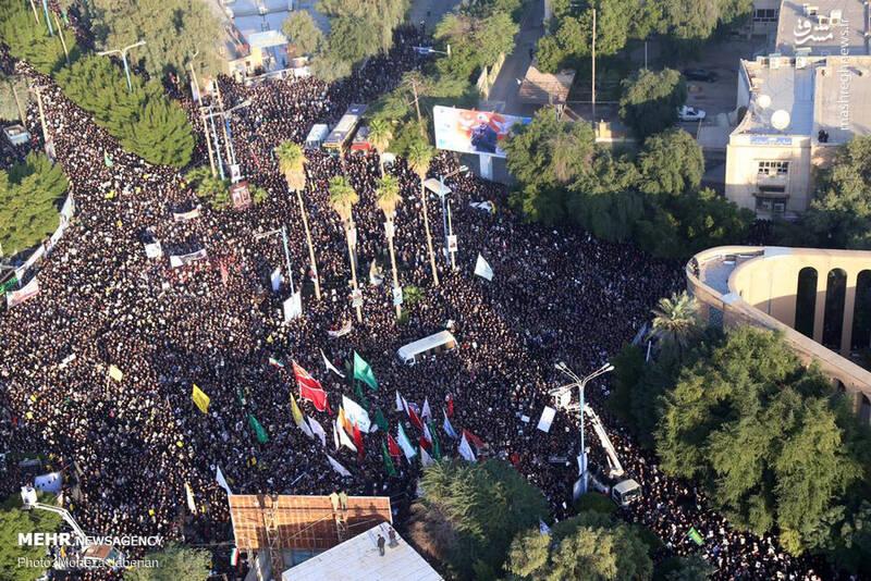 عکس/ تصویر هوایی از جمعیت خوزستانیها در مراسم سردار سلیمانی