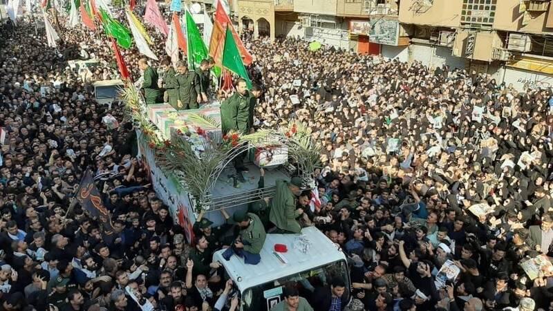 خودروی حامل پیکر سردار سلیمانی و دیگر شهدا به خیابان سلمان فارسی اهواز رسید