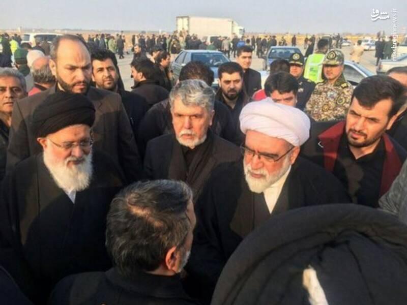 نماینده ولی فقیه و امام جمعه مشهد به همراه تولیت آستان قدس رضوی از پیکر شهید سلیمانی در فرودگاه شهید هاشمی نژاد مشهد استقبال کردند.