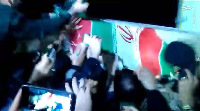 لحظه انتقال پیکر حاج قاسم سلیمانی به هواپیما جهت اعزام از مشهد به فرودگاه تهران.
