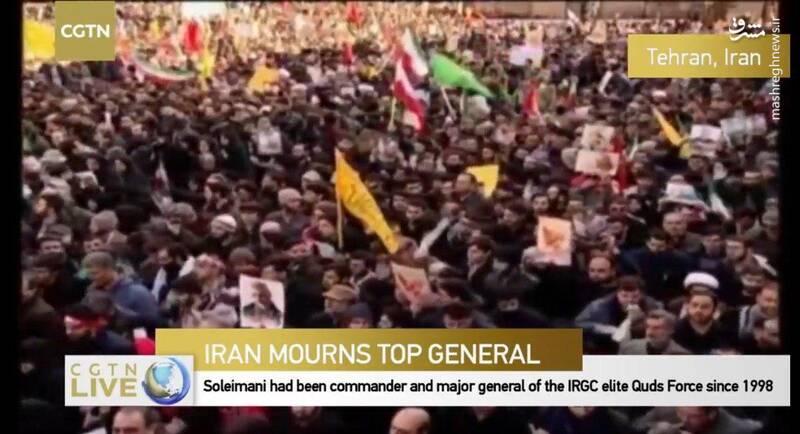 عکس/ پخش زنده مراسم تشییع پیکر سپهبد سلیمانی از تلویزیون چین