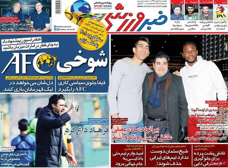 روزنامههای ورزشی چهارشنبه ۲ بهمن