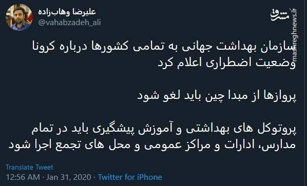 همچنین برخی منابع خبری هم از درخواست وزیر بهداشت برای لغو پروازهای بین ایران و چین خبر دادهاند.