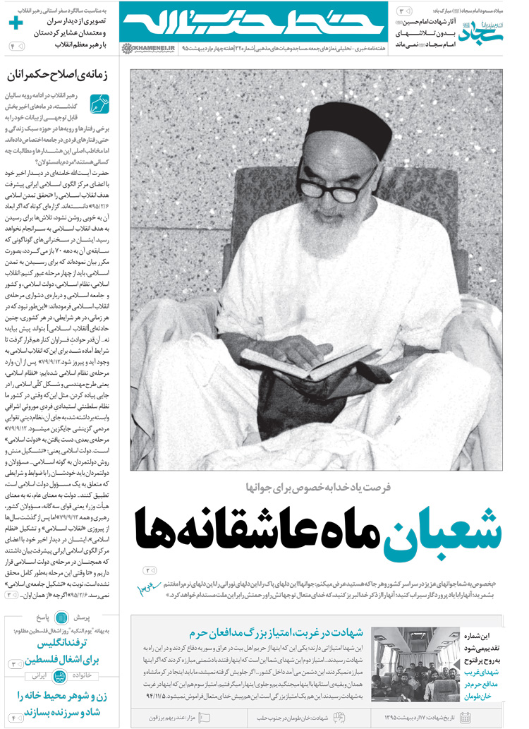 سخن هفته این شماره خط حزبالله نیز با عنوان «زمانه اصلاح حکمرانان» به مخاطب شناسی تاکیدها و تذکرهای اخیر رهبر انقلاب در حوزه سبک زندگی جامعه پرداخته است.