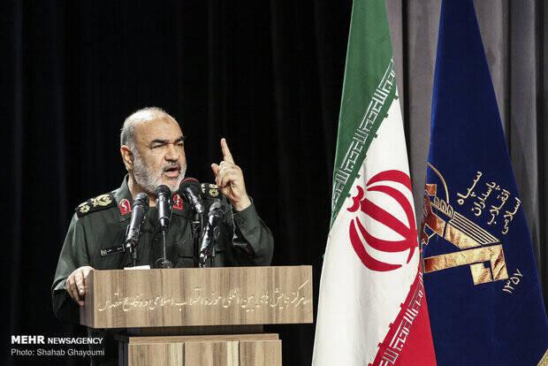 سردار سلامی با اشاره به اینکه سردار سلیمانی آموخته بود در میدان جنگ باید کاسه سر را به خدا عاریه داد، ادامه داد: او هرگز در مقابل دشمن نمیلرزید و گامهایش استوار بود و زره قاسم پشت نداشت.