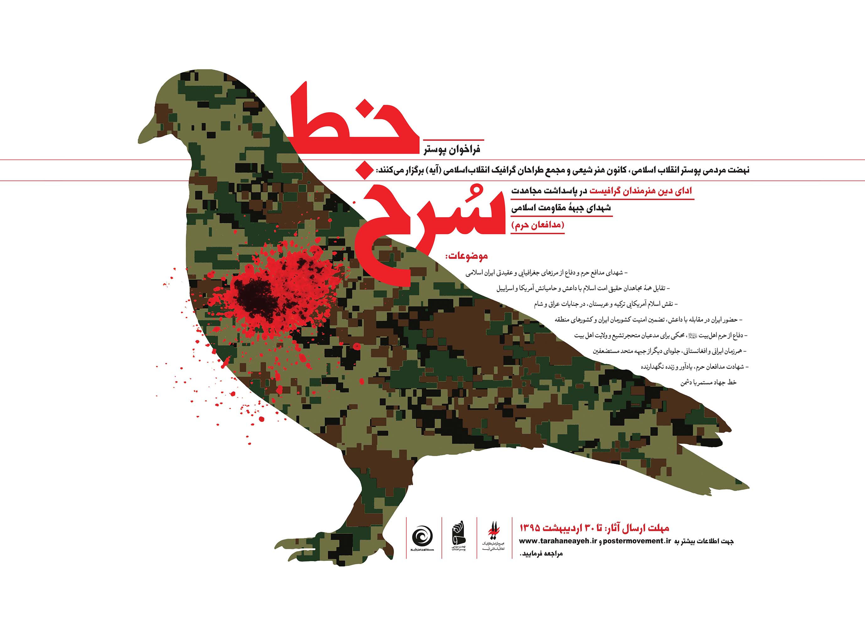 بر اساس این گزارش، فراخوان پوستر «خط سرخ» به منظور ادای دین هنرمندان گرافیست در پاسداشت مجاهدت شهدای جبهۀ مقاومت اسلامی مدافعان حرم، اعلام شده است.