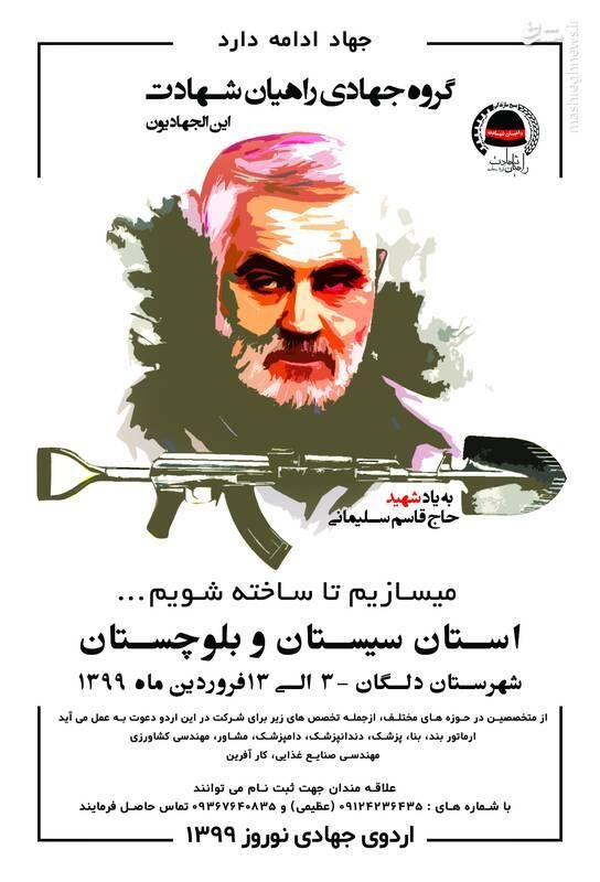 حلقه وصل: گروه جهادی راهیان شهادت به یاد شهید حاج قاسم سلیمانی اردوی جهادی به مقصد استان سیل زده سیستان و بلوچستان برگزار می نماید.