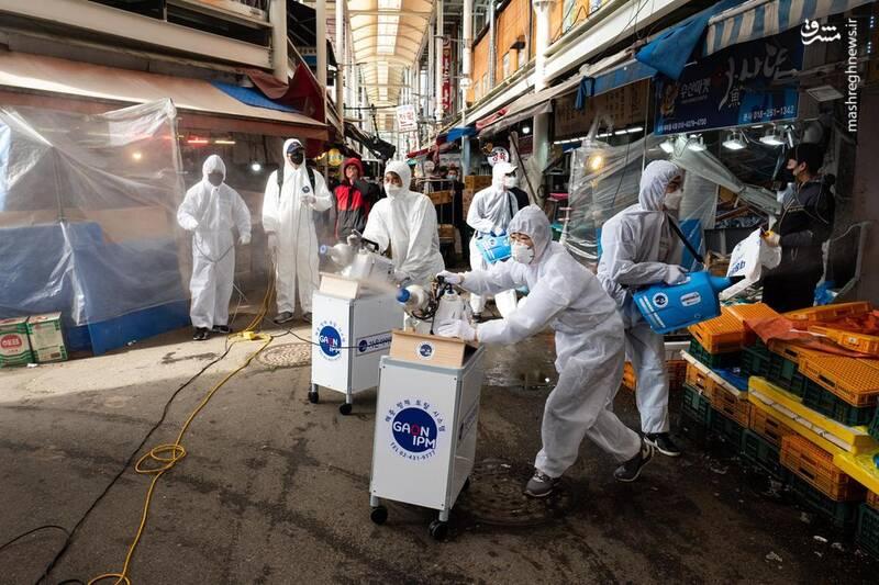 تصویری از نحوه ضدعفونی کردن محیط بازار سئول در جنوب این کشور را میبینید./عکس: EPA