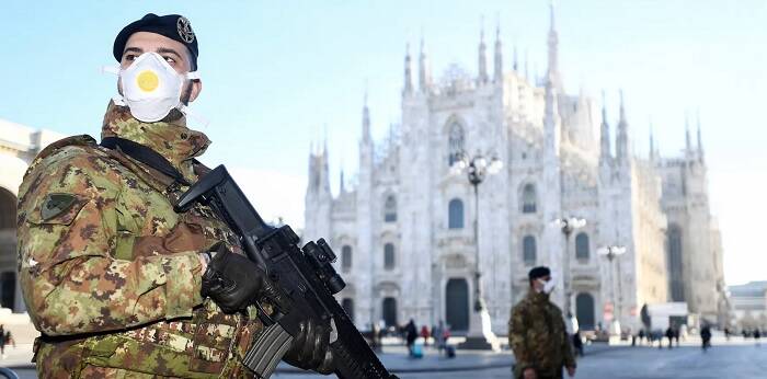 کشور ایتالیا یکی از بزرگترین کشور از نظر داشتن تعداد مبتلایان به ویروس کرونا است. به همین دلیل ایتالیایی ها به سرعت برنامه قرنطینه را به اجرا گذاشته و چیزی در حدود 100 هزار نفر از اهالی این کشور در حال حاضر در قرنطینه به سر می برند. بیش از 10 روز است که از آغاز مرگ و میر به دلیل این ویروس در ایتالیا می گذرد و عمدتا بخش های شمالی این کشور درگیر این ویروس شده اند. ارتش و پلیس ایتالیا وظیفه قرنطینه و نظارت بر اجرای دقیق قوانین منع رفت و آمد برای جلوگیری از گسترش ویروس را بر عهده دارند.