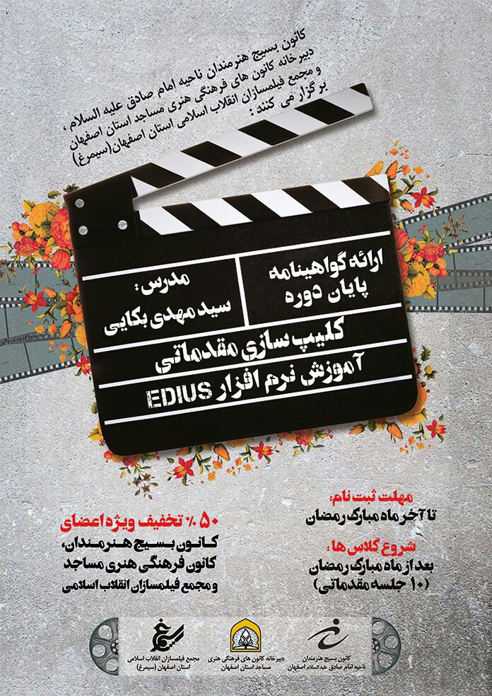 به گزارش سرویس استان های حلقه وصل، دوره های اموزشی«کلیپ سازی مقدماتی و نرم افزار ادیوس(EDIUS)» با همکاری مجمع فیلمسازان انقلاب اسلامی، کانون بسیج هنرمندان ناحیه امام صادق(ع) و دبیرخانه کانون های فرهنگی مساجد استان اصفهان برگزار می گردد.