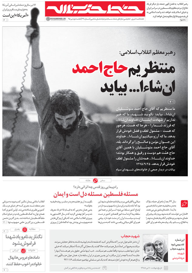 سرویس مبشر صبح: انتشار بیانات منتشر نشده رهبر انقلاب دربارهی حاج احمد متوسلیان، از دیگر بخشهای این شماره است.