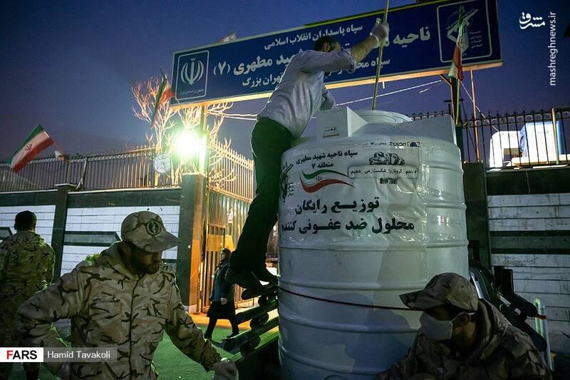 عکس/ توزیع رایگان محلول ضد عفونی کننده توسط بسیج