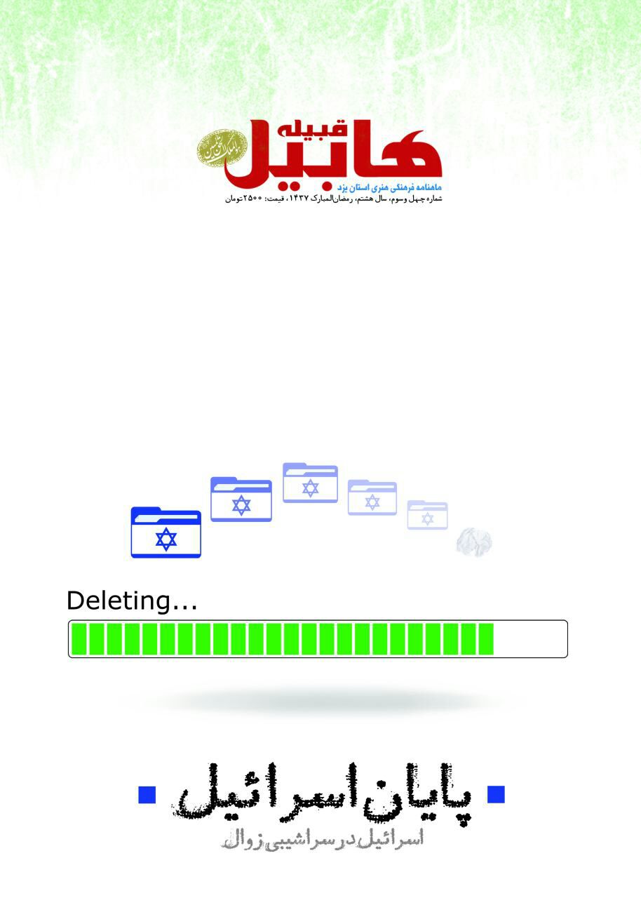 به گزارش سرویس استانهای حلقه وصل، شماره جدید ماهنامه فرهنگی قبیله هابیل با عنوان پایان اسرائیل به مناسبت روز قدس منتشر و در راهپیمایی روز جهانی قدس در یزد توزیع شد.
