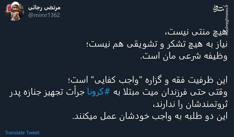 به گزارش حلقه وصل، مرتضی رجایی در توئیتی نوشت: