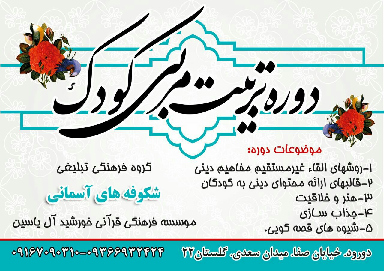هادی بوالحسنی باغجمالی مدیر مؤسسه فرهنگی قرآنی خورشید آل یاسین به حلقه وصل گفت: دوره تربیت مربی کودک با همکاری گروه فرهنگی تبلیغی شکوفه های آسمانی برگزار می گردد.