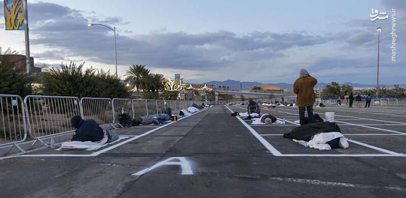 خطکشی با فاصله در یک پارکینگ یکی از ثروتمندترین ایالت لاس وگاس برای خوابیدن بیخانمانها ببینید.
