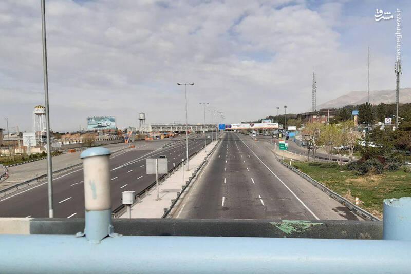 محدوده پل چیتگر اتوبان تهران _ کرج در روز سیزده فروردین ۹۹ ، عدم حضور شهروندان در اتوبان را میبینید.