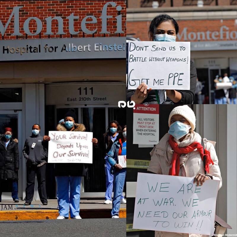 رویترز: اعتراض پرستاران آمریکایی به نبود تجهیزات محافظتی در برابر کرونا «ما را بدون سلاح به جنگ نفرستید!»