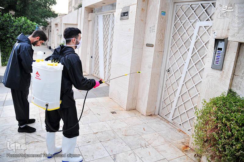 عکس/ استمرار ضدعفونی درب منازل در اهواز