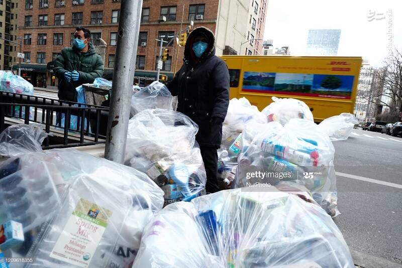 انباشته شدن زباله های پلاستیکی در خیابان های منهتن نیویورک در بحران کرونا ، آمریکا با ۵۶۰,۴۳۳ مبتلا و ۲۲,۱۱۵ فوتی بیشترین موارد ابتلا به ویروس کرونا را در جهان دارد.