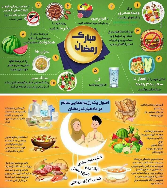 اینفوگرافیک ۲۰ توصیه تغذیهای برای ماه مبارک رمضان منتشر شد.