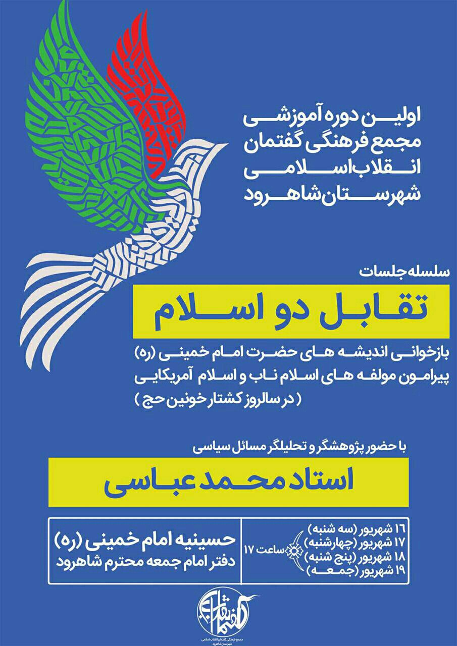 دبیر مجمع گفتمان انقلاب اسلامی شاهرود اضافه کرد: این دوره به صورت عمومی ویژه تمام فعالین فرهنگی با حضور پژوهشگر و تحلیلگر مسائل سیاسی استاد محمد عباسی به مدت چهار روز برگزار می شود.