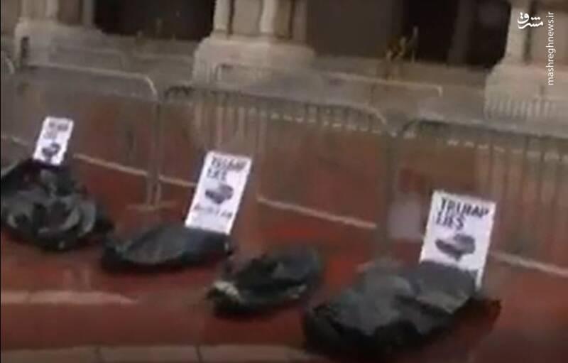 فیلم/قرار دادن کیسههای حمل جسد مقابل هتل ترامپ