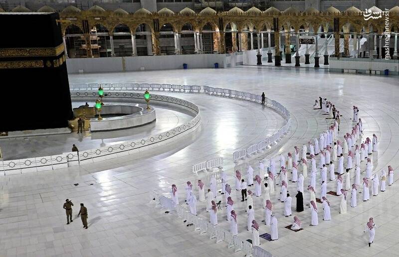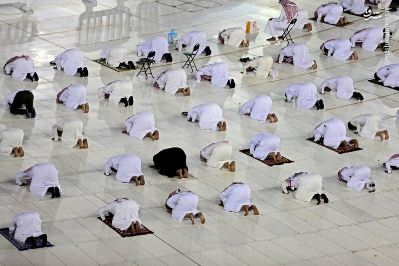 عکس/ نماز در کنار کعبه با حفظ فاصله اجتماعی