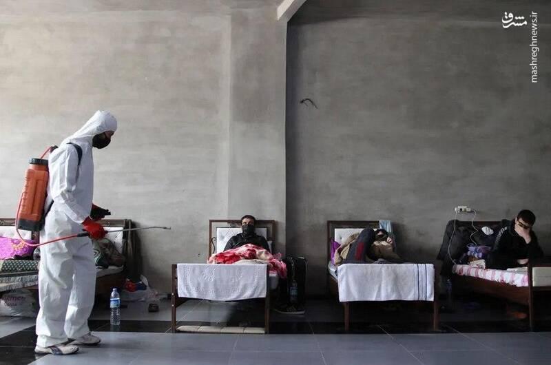 عکس/ ضدعفونی مرکز قرنطینه پناهجویان در سوریه