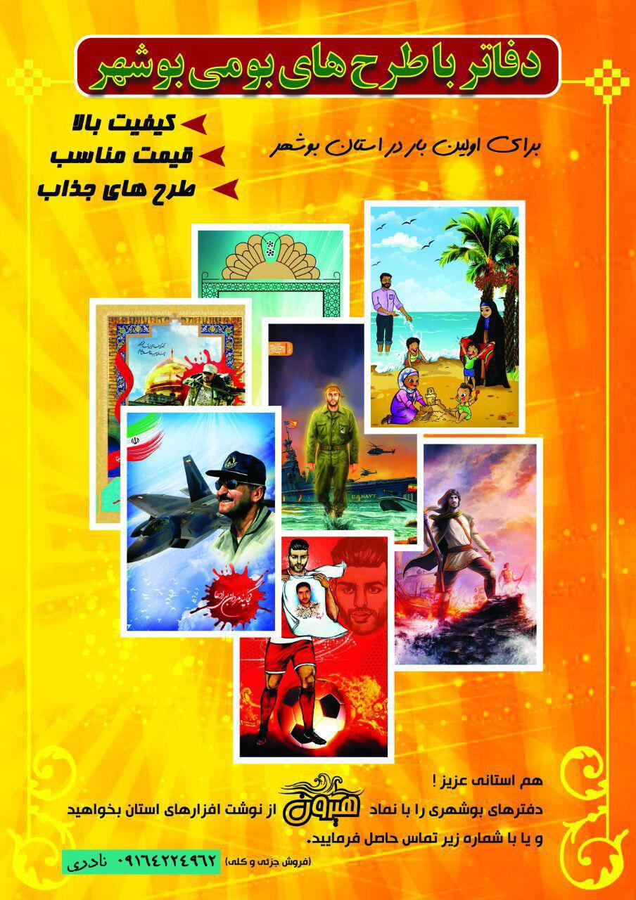وی ادامه داد: در واقع بنده به همراه تعدادی از بچه های انقلابی که دغدغه حمایت از تولید داخلی و همچنین مقابله با جنگ نرم دشمن را دارند تصمیم به تولید دفاتر با طرح های بومی بوشهر گرفتیم.