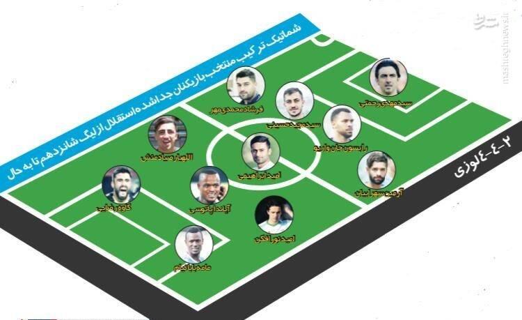 هافبک چپ؛ امید نورافکن میشد برای این پست جپاروف را هم انتخاب کرد و نورافکن را یک خط عقبتر برد، اما سن بالای جپاروف و دوری اش از فوتبال دلیلی بود تا در این ترکیب منتخب نباشد. استقلال به راحتی نورافکن را از دست داد تا کار به جایی بکشد که این فصل به ستاره سپاهان در بازی برابر استقلال تبدیل شود و ۳ امتیاز شیرین بازی در اصفهان را از چنگ استقلال خارج کرد. امید با توانایی بازی در چند پست همیشه عصای دست مربیانش است و میتوانست در استقلال کمک حال این روزهای فرهاد مجیدی باشد.