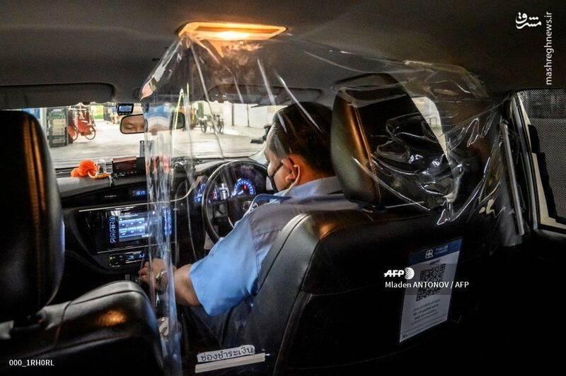 یک راننده تاکسی در بانکوک تایلند در دوران کرونا/عکس: AFP