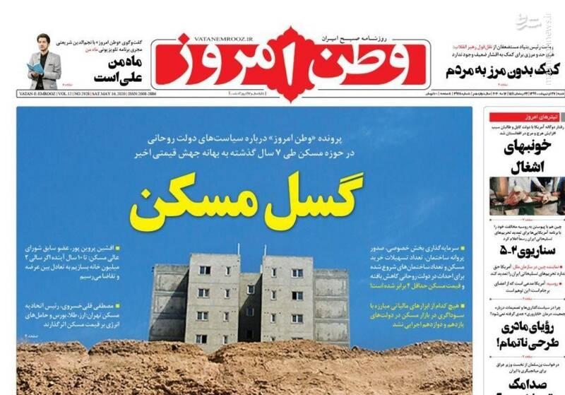 سازهای ناکوک در شبکه نمایش خانگی/ میوه جدید برجام/گسل مسکن/ کرونا از نفس افتاد/ شیهد قدس/ ابزار نظارتی مجلس کافی نیست/ پایان عصر جهانی شدن/ بورس از هیجان میافتد/تیتر تعدادی از روزنامههای امروز است.