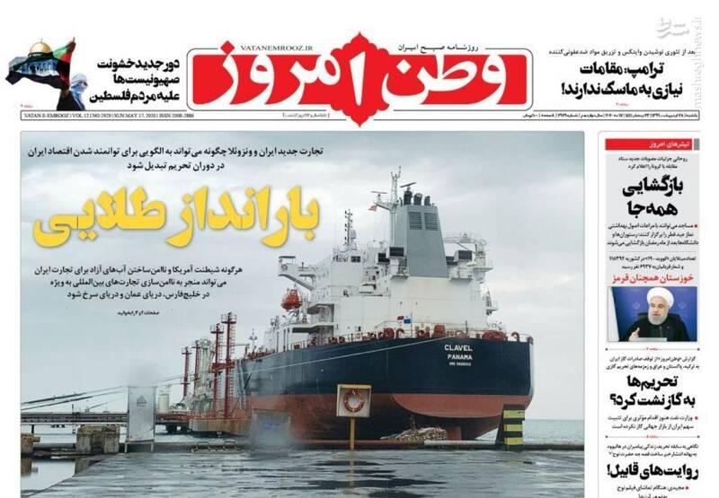 وعدههای دولت راستگویان، ملت ایران! یادتان هست! /کرانه باختری در وضعیت انفجار/جداسازی بیماران کرونا روی هوا!/نمایش دزد دریایی/بازگشایی حرم؛ ۳ ساعت صبح ۳ ساعت عصر!/تیتر تعدادی از روزنامههای امروز است.