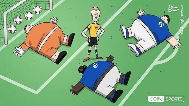 کاریکاتوری از اضافه وزن بازیکنان فوتبال بر اثر قرنطینه در بازی شالکه و دورتموند را مشاهده می کنید.