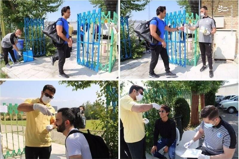 تصاویری از معاینه بازیکنان و ضد عفونی اعضای تیم فوتبال استقلال پیش از ورود به زمین تمرین را مشاهده می کنید.
