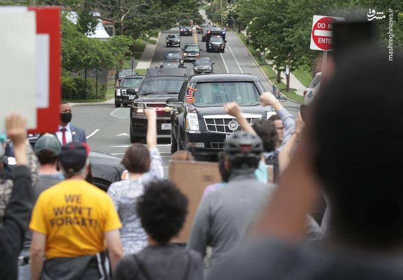 کاروان خودرویی ترامپ هنگام سفر امروز وی به یک عبادتگاه با جمعیت معترض به قتل جورج فلوید در مسیر خود روبرو شد.