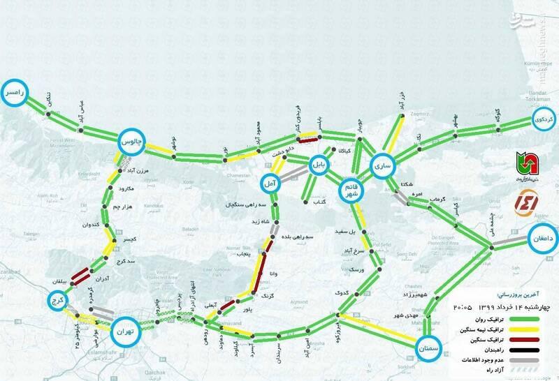 نقشه آخرین وضعیت ترافیک جادهای شمال کشور
