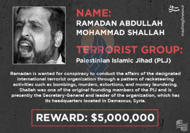 در زیر اعلام تحت تعقیب بودن مرحوم «رمضان عبدالله شلح» دیده می شود.