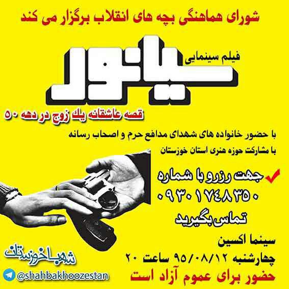 مرضیه السادات رضوی عضو شورای هماهنگی«بچه های انقلاب» اهواز به حلقه وصل گفت: فیلم سینمایی سیانور ویژه خانواده های شهدای مدافع حرم اهواز با مشارکت حوزه هنری استان خوزستان همراه با عرضه کتاب«مثل خاک های نرم کوشک» به نمایش در می آید.